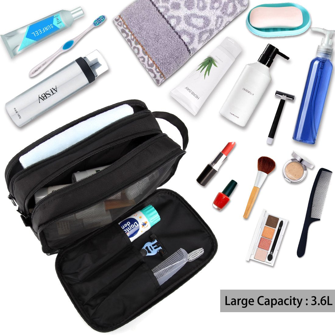 • Facile da Organizzare: Tre scomparti con cerniera per garantire una buona organizzazione. Le tasche interne in rete tengono le bottiglie in posizione verticale per evitare che si rovesciano e trovano facilmente la roba. Tre piccole tasche per il rasoio e il pettine.
