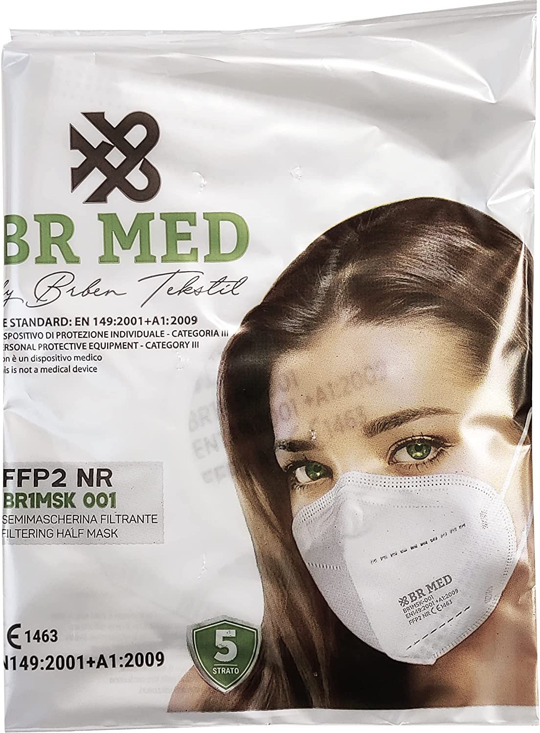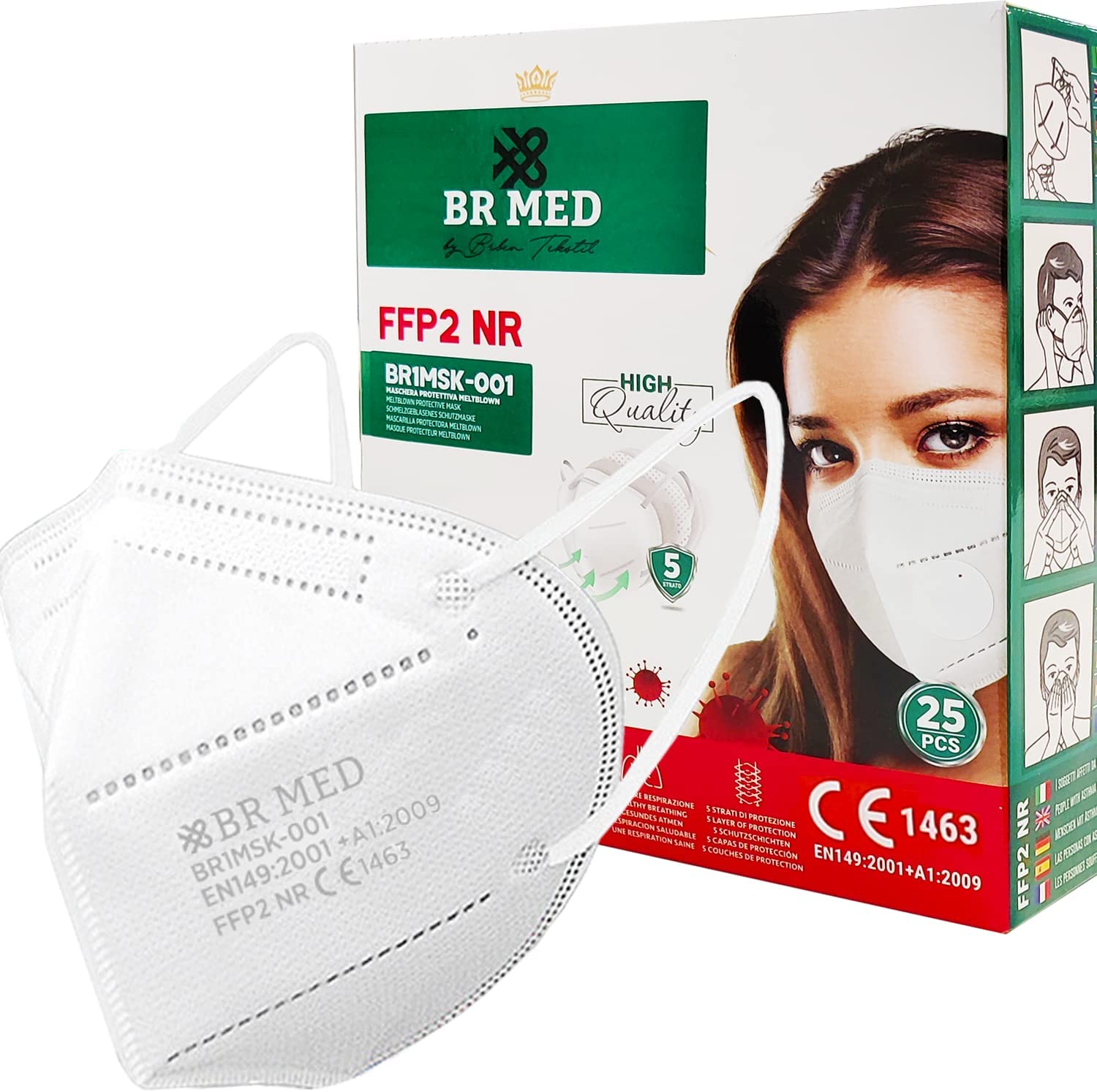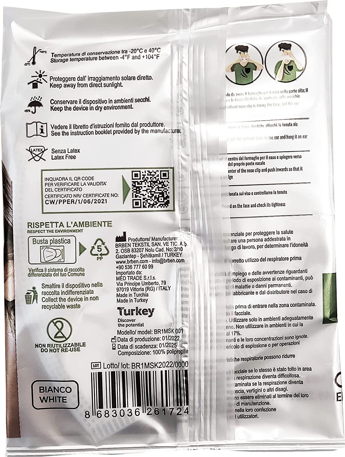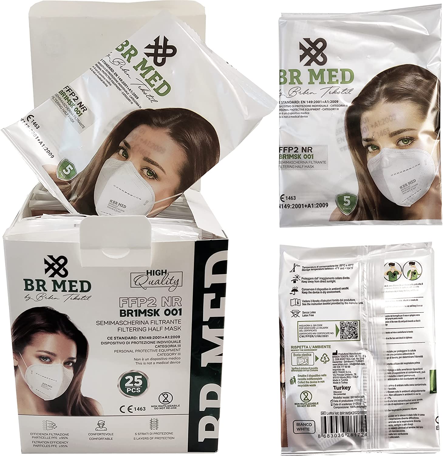 25 Mascherine FFP2 certificate CE 1463 confezionate singolarmente mascherina ffp2 taglia REGULAR STANDARD BRMED (25 FFP2, Bianche)