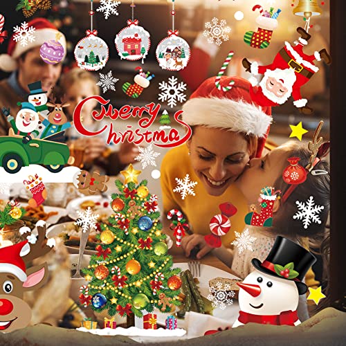 - ELEMENTI DI NATALE - Gli adesivi per vetrine di Natale per vetro includono fiocchi di neve, Babbo Natale, pupazzo di neve, albero di Natale, renne, secondo le tue preferenze per creare la tua scena natalizia calda e bella.
