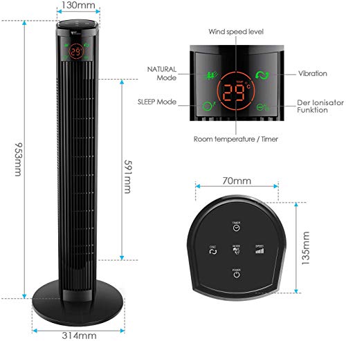 - ⛄【Controllo Intelligente】: Ventola ha una tecnologia di controllo intelligente, tramite telecomando o pannello a sfioramento, che consente una regolazione più semplice. Con il pulsante in alto puoi controllare il Fan Tower più comodamente e comodamente, senza chinarti. D'altra parte, grazie al telecomando, puoi anche controllare comodamente la ventola dal divano o dal letto.