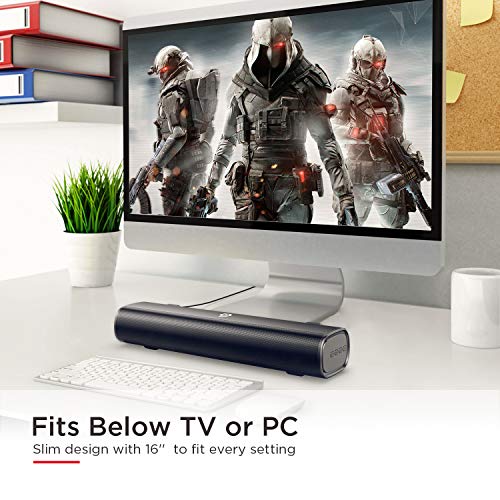 - 【Goditi la musica ovunque】Un design semplice ed elegante, la lunghezza del prodotto è di soli 41 cm, e pesa solo 0,9 kg, facendoti risparmiare molto spazio e consentendoti di metterlo ovunque, dalla camera da letto alla cucina, dal bagno al giardino. Ideale per TV più piccola di 43 '' / PC / Proiettore / Tablet / PS4 / Xbox, ecc.
