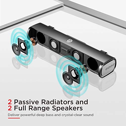 - 【Qualità estrema nell'ascolto】La potenza RMS è fino a 30 W, che è dell'80% superiore alla maggior parte delle altre Mini soundbar. Unità di azionamento full range integrata da 57 mm, doppio diaframma passivo e 2 altoparlanti full range con bassi straordinari, consentono di ascoltare nel dettaglio, e di offrire un suono cristallino e di elevata qualità.