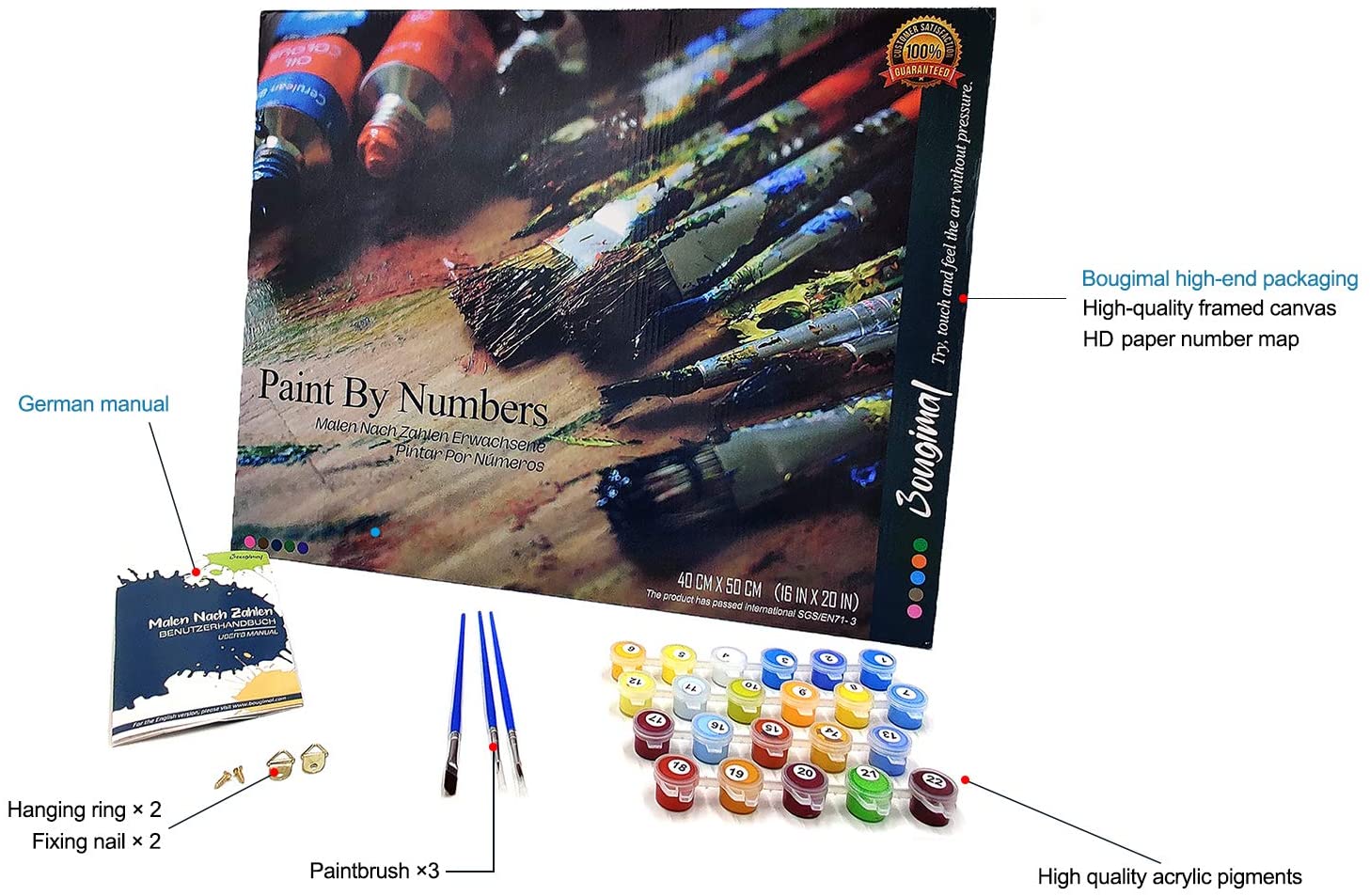 Bougimal Dipingere con i Numeri Adulti, Kit per dipingere con i Numeri con pennelli e pigmento Acrilico Regalo per Donne Mamma Figlia Natale Compleanno Decorazione della casa - con Telaio 40 * 50 cm
