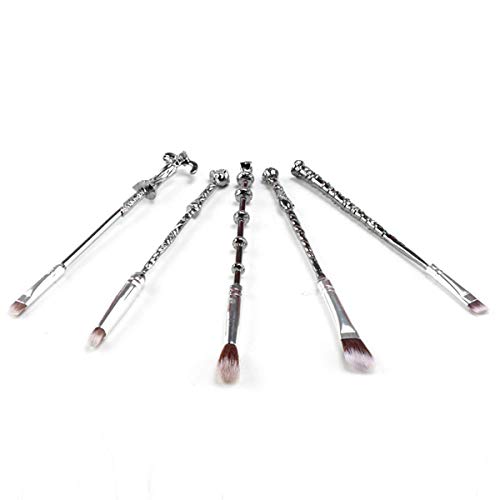 Ithyes, Set di 5 pennelli da trucco, con impugnatura a forma di bacchetta magica, setole di bell'aspetto, colore: argento e nero