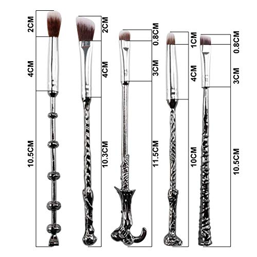 - Buona qualità: il set di pennelli da trucco a forma di bacchetta magica è composto da 5 pennelli realizzati in metallo, lega di alluminio e setole sintetiche morbide.