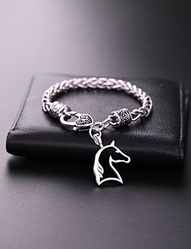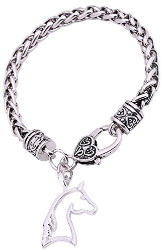 Lemegeton equestre Cut-out Ciondolo a Forma di Testa di Cavallo Pony frumento Catena Bracciale per Cowgirls Gift Jewelry