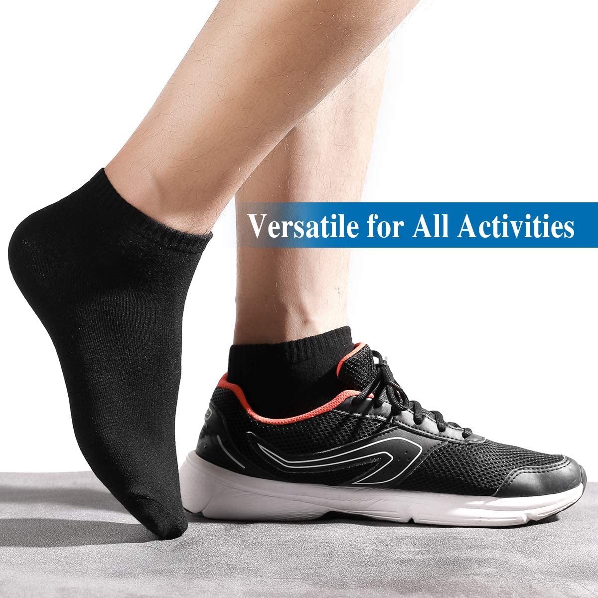 【Traspiranti,Comodi e Anti-Vescica】Questi calzini sportivi quarter sono realizzati in Prolen, un materiale tecnico e traspirante che terrà i tuoi piedi fresci e asciutti tutto il giorno, anche durante gli allenamenti più intenti. Questi calzini lunghi fino alla caviglia hanno aree anti-sfregamento sul tallone e sulla punta per assicurare dei piedi senza vesciche