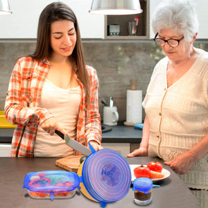 Il coperchio in silicone estensibile sostituisce la pellicola trasparente e il foglio di alluminio, più ecologico. Più economia e più comfort.