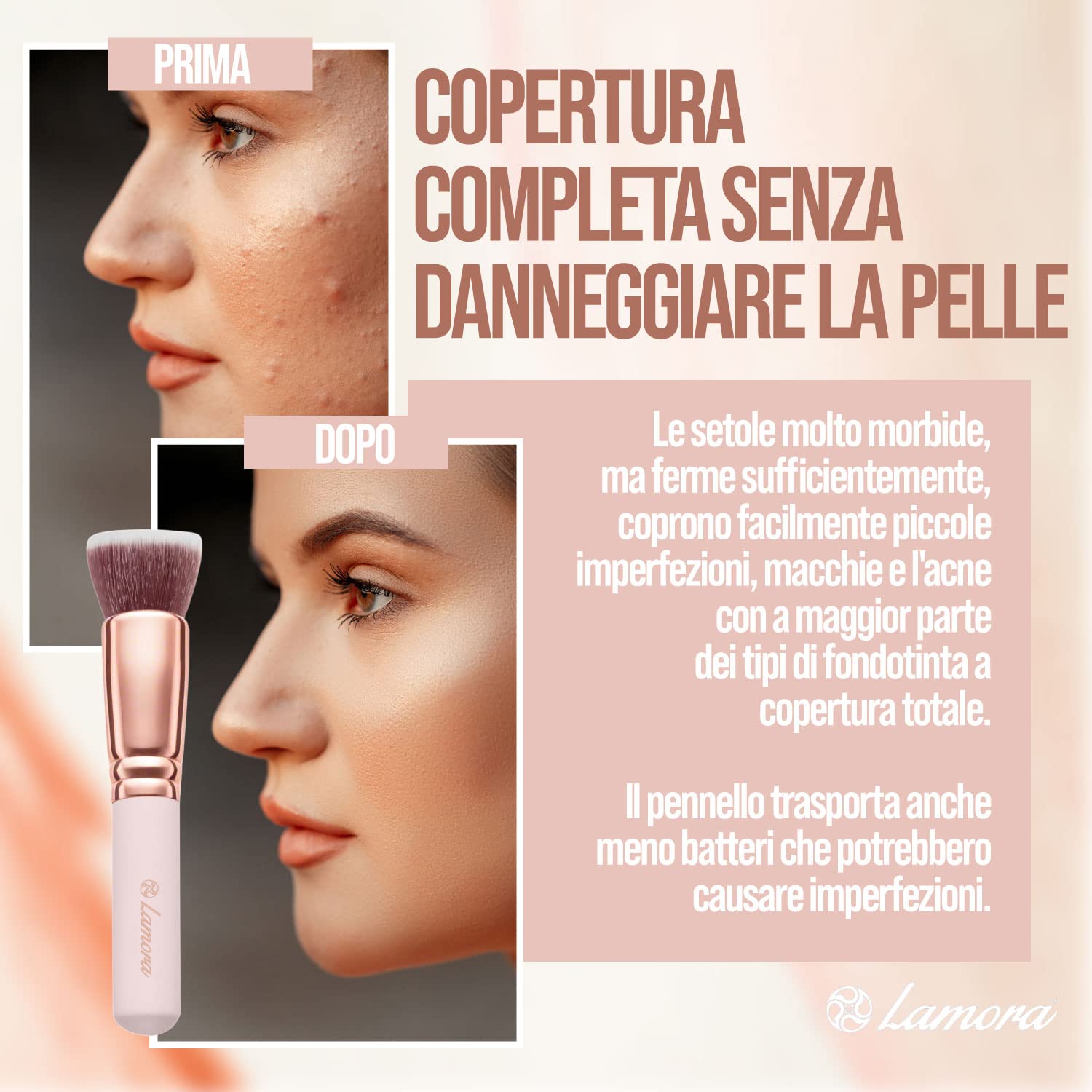 • Questo é uno dei migliori PENNELLI PER TRUCCO FACCIALE che potrai acquistare. Le fibre sintetiche speciali risultano particularmente soffici al tatto e garantiscono un applicazione uniforme e comoda. Ti innamorerai di lui. Questo pennello piatto kabuki, superera’ le tue aspettative. Il tuo fondotinta sara’ perfetto e con un effetto setoso, paragonabile a un trucco con aerógrafo. Non ti deludera’ in alcun modo.