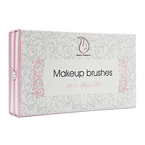 Pennelli Make Up Start Makers 32 pezzi Professionale Pennelli Cosmetici Spazzola Pennello Fondotinta con Custodia in Pelle Effetto Lusso e Raffinata Confezione Regalo & Blender Spugna