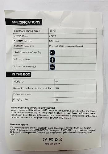 - [Garanzia di soddisfazione del cliente]: Non sei soddisfatto? Contattateci, ci pensiamo subito noi. Seguici facendo clic su "acquista ora" per scuotere il mondo. Cappello wireless taglia unica per tutte le dimensioni della testa. Il berretto Bluetooth è facile da pulire e comodo da indossare per lunghi periodi di tempo.