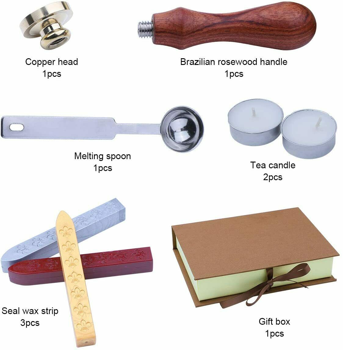 Descrizione prodotto: SET COMPLETO: La confezione contiene 1 timbro rosa rame, 2 ceralacca, 3 bastoncini ceralacca (oro, argento, rosso scuro), 1 cucchiaio da minestra fuso e confezione regalo. Il set di ceralacca può aiutarti a realizzare bellissime stampe COMUNICAZIONE EMOZIONALE: Quando scrivi una busta o una lettera di invito, puoi decorarla con questi set di sigilli di cera retrò e mantenere la lettera riservata. Il motivo sul sigillo può migliorare il tuo gusto ed esprimere le tue benedizioni ed emozioni DESIGN DELLA CONFEZIONE: La confezione utilizza colori retrò, che sembrano un antico libro misterioso. Questo è un regalo creativo per te, la tua famiglia e i tuoi amici, oppure puoi anche usarlo come collezione FACILE DA USARE: Il timbro di rame rimovibile è montato sul manico rotante pera brasiliana. Il sigillo di cera è facile da sciogliere e asciugare rapidamente. Puoi ritagliare un pezzo di striscia di cera, quindi scioglierlo in un cucchiaio con cera da tè, versare la cera fusa nella posizione che ti serve e coprirla con un sigillo AMPIA GAMMA DI UTILIZZI: Adatto per decorare buste, pacchi, confezioni regalo, inviti, biglietti, cartoline, sigilli per vino, artigianato e regali e altre feste o varie altre attività