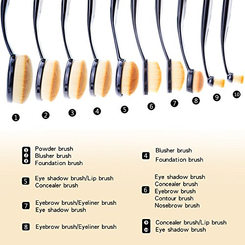 Start Makers pennelli ovali make up - 10pcs / Set Spazzolino stile black