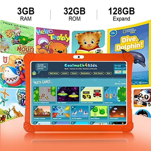 • ✿Design intimo: utilizza uno schermo IPS con una risoluzione di 1280 X 800 pixel per aumentare il contrasto, rendere più chiaro il testo e proteggere meglio gli occhi dei bambini, ed è inoltre dotato di un robusto guscio di staffa in silicone morbido di alta qualità, che può essere Per evitare che i bambini cadano e si rompano durante il gioco, l'altezza della clip posteriore dell'involucro è regolabile, il che è più comodo per guardare video e giocare sul tavolo.