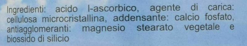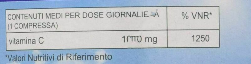 Vitalife C di Life 120 | Vitamina C 240 Compresse 1000 mg Integratore Alimentare | Distributore Ufficiale OneLifeDescrizioneDescrizioneVitalife c è un integratore specifico di sola vitamina c. ogni compressa di vitalife c contiene ben un grammo di vitamina c che verrà rilasciato lentamente durante tutta la tua giornata.VitaLife C è uno degli undici integratori previsti dallo stile di vita Life 120, descritto nel libro “Vivere 120anni – le verità che nessuno vuole raccontarti“, del giornalista Adriano Panzironi.Ingredienti VitaLife CVitamina C (acido L-ascorbico), agente di carica: cellulosa microcristallina, addensante: idrossipropilmetilcellulosa, antiagglomeranti: sali di magnesio degli acidi grassi e biossido di silicio.Informazioni nutrizionali di VitaLife C – contenuti medi per dose giornaliera e %VNR (1 compressa)Vitamina C: 1000 mg (1250% VNR)*VNR: Valori Nutritivi di RiferimentoModalità d’uso di VitaLife CLo stile di vita Life 120 di Adriano Panzironi consiglia di assumere una compressa al giorno di VitaLife C.Si consiglia, prima dell’assunzione, di condividere con il proprio medico la scelta di iniziare questo tipo di integrazione.Avvertenze VitaLife CNon superare la dose giornaliera raccomandata di VitaLife C. Gli integratori non vanno intesi come sostituti di una dieta variata, equilibrata e di uno stile di vita sano. Tenere fuori dalla portata dei bambini al di sotto dei 3 anni di età. Non assumere in caso di ipersensibilità o di allergie verso uno o più componenti. Non utilizzare in gravidanza e nei bambini, o comunque per periodi prolungati senza sentire il parere del medico.Conservazione VitaLife CConservare VitaLife C a temperatura ambiente in luogo fresco e asciutto. Evitare l’esposizione a fonti di calore localizzato, ai raggi solari e il contatto con l’acqua. La data di fine validità si riferisce al prodotto correttamente conservato, in confezione integra. Non disperdere nell’ambiente dopo l’uso.Formato VitaLife CConfezione da 240 compresse di VitaLife C.IngredientiVitamina C (acido L-ascorbico), agente di carica: cellulosa microcristallina, addensante: idrossipropilmetilcellulosa, antiagglomeranti: sali di magnesio degli acidi grassi e biossido di silicio.IndicazioniLo stile di vita Life 120 di Adriano Panzironi consiglia di assumere una compressa al giorno di VitaLife C. Si consiglia, prima dell’assunzione, di condividere con il proprio medico la scelta di iniziare questo tipo di integrazione.Informazioni legaliModalità d’uso di VitaLife C Lo stile di vita Life 120 di Adriano Panzironi consiglia di assumere una compressa al giorno di VitaLife C. Si consiglia, prima dell’assunzione, di condividere con il proprio medico la scelta di iniziare questo tipo di integrazione. Avvertenze VitaLife C Non superare la dose giornaliera raccomandata di VitaLife C. Gli integratori non vanno intesi come sostituti di una dieta variata, equilibrata e di uno stile di vita sano. Tenere fuori dalla portata dei bambini al di sotto dei 3 anni di età. Non assumere in caso di ipersensibilità o di allergie verso uno o più componenti. Non utilizzare in gravidanza e nei bambini, o comunque per periodi prolungati senza sentire il parere del medico. Conservazione VitaLife C Conservare VitaLife C a temperatura ambiente in luogo fresco e asciutto. Evitare l’esposizione a fonti di calore localizzato, ai raggi solari e il contatto con l’acqua. La data di fine validità si riferisce al prodotto correttamente conservato, in confezione integra. Non disperdere nell’Contenuto della confezioneVitalife CVisualizza di più Caratteristiche: