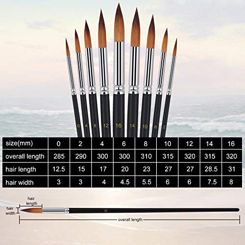 WLOT pennelli per Pittura Forniture Art Olio, Acrilico, Acquerello,9 Pezzi.