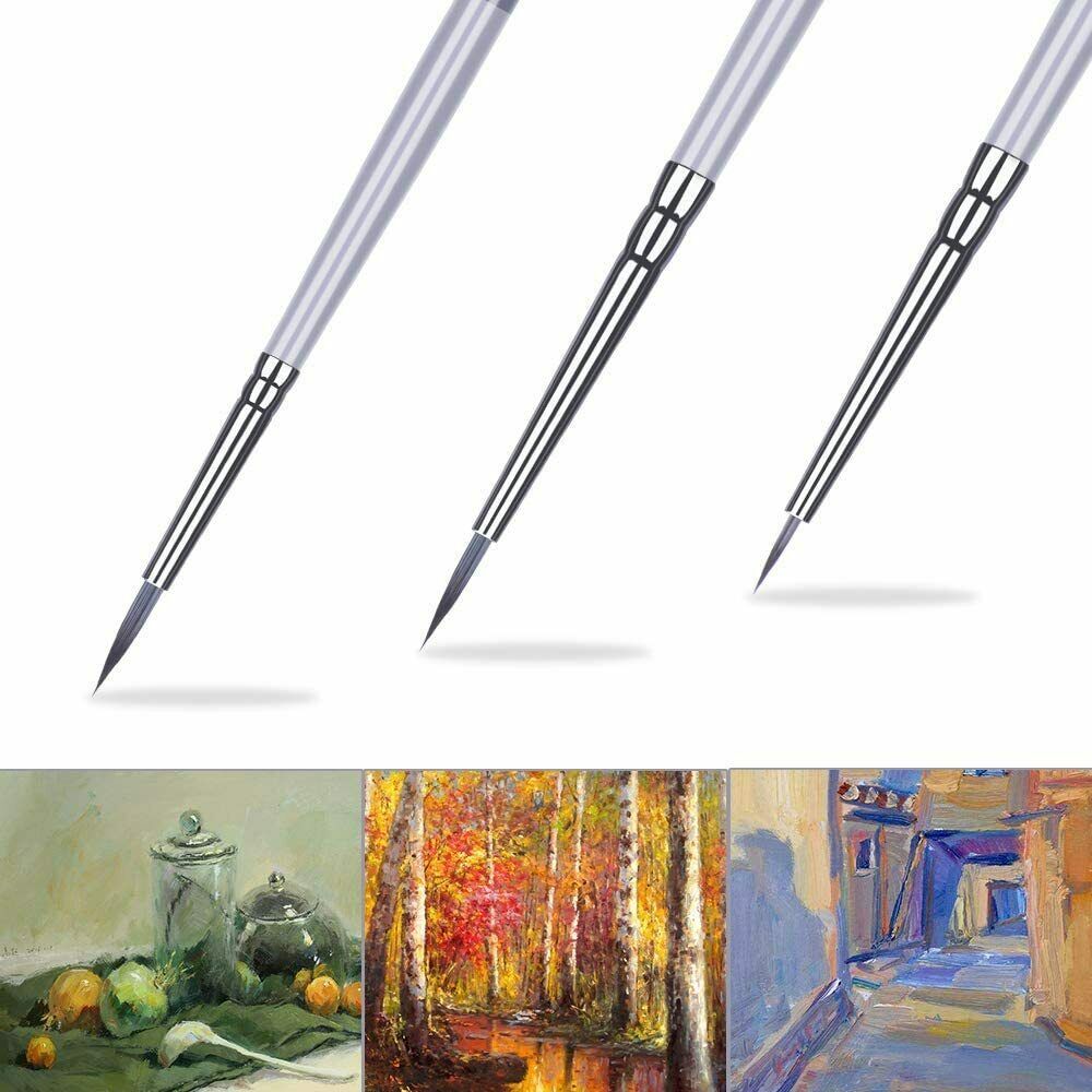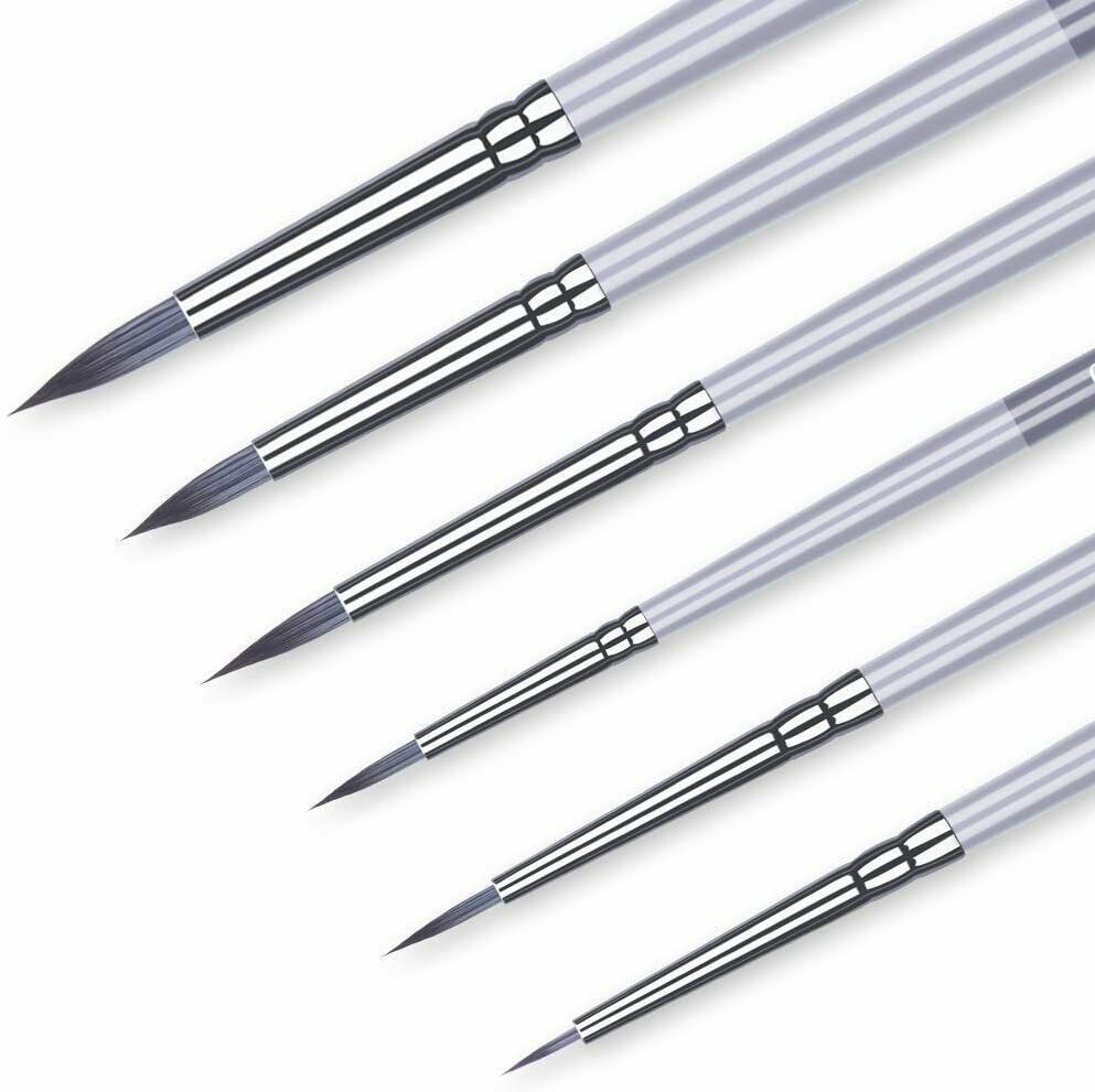 Set di pennelli in miniatura per pitture artistiche, 6 pezzi Specifiche: Materiale del pennello: setole di nylon con manico in legno. Dimensioni del pennello: 3/ 0, 2/ 0, 0, 0, 1, 2, 3. Lunghezza del pennello: 17,2 cm a 19,5 cm. Ampia applicazione: Il set di pennelli trattenere è un buon accessorio per la pittura, adatto per miniature, figure militari, giochi di guerra, pittura acrilica dettagliata, acquerello e pittura artistica.