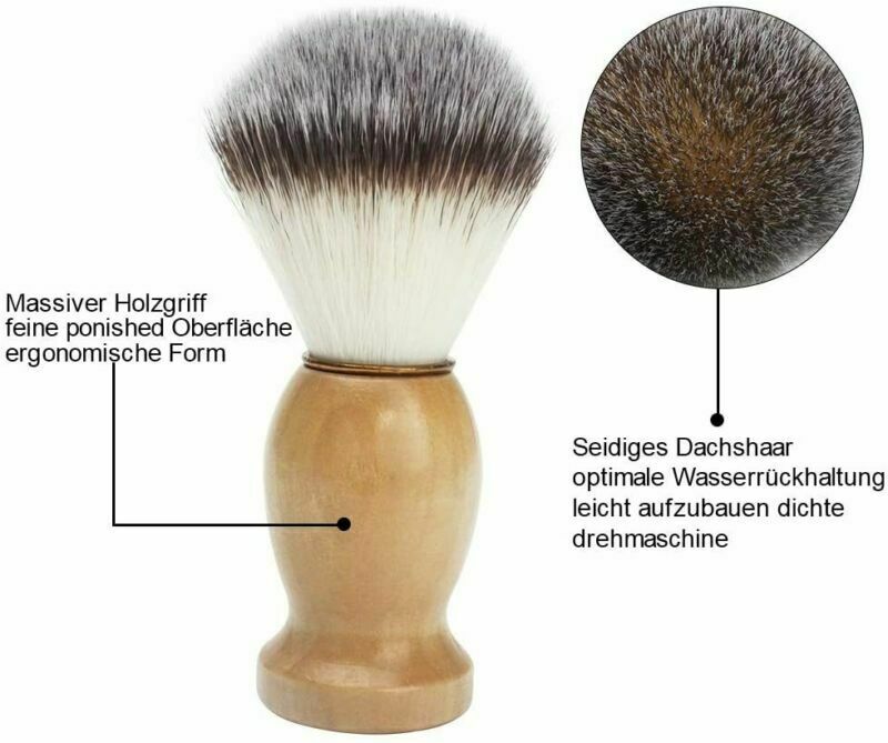 Pennello da barba in pelo di tasso al 100%: le setole del pennello sono costituite da peli di puro tasso. Sono setosi, morbidi e aderiscono al manico del pennello.