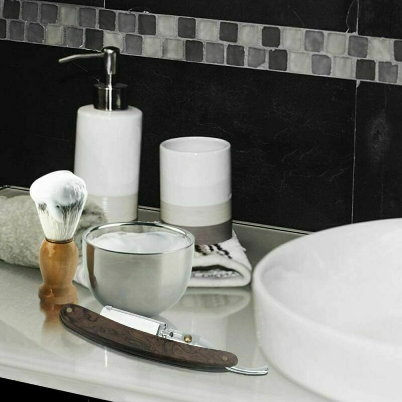 Acciaio inossidabile : La ciotola da barba con supporto per pennello da barba è realizzata in acciaio inossidabile , la superficie finemente levigata crea un bell'aspetto.